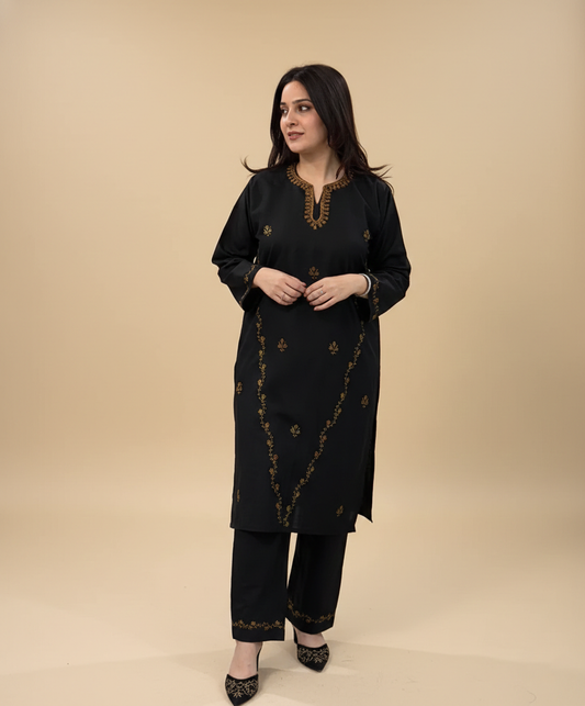 Hand Sozni Embroidered Black Paisley Design Co Ord Set
