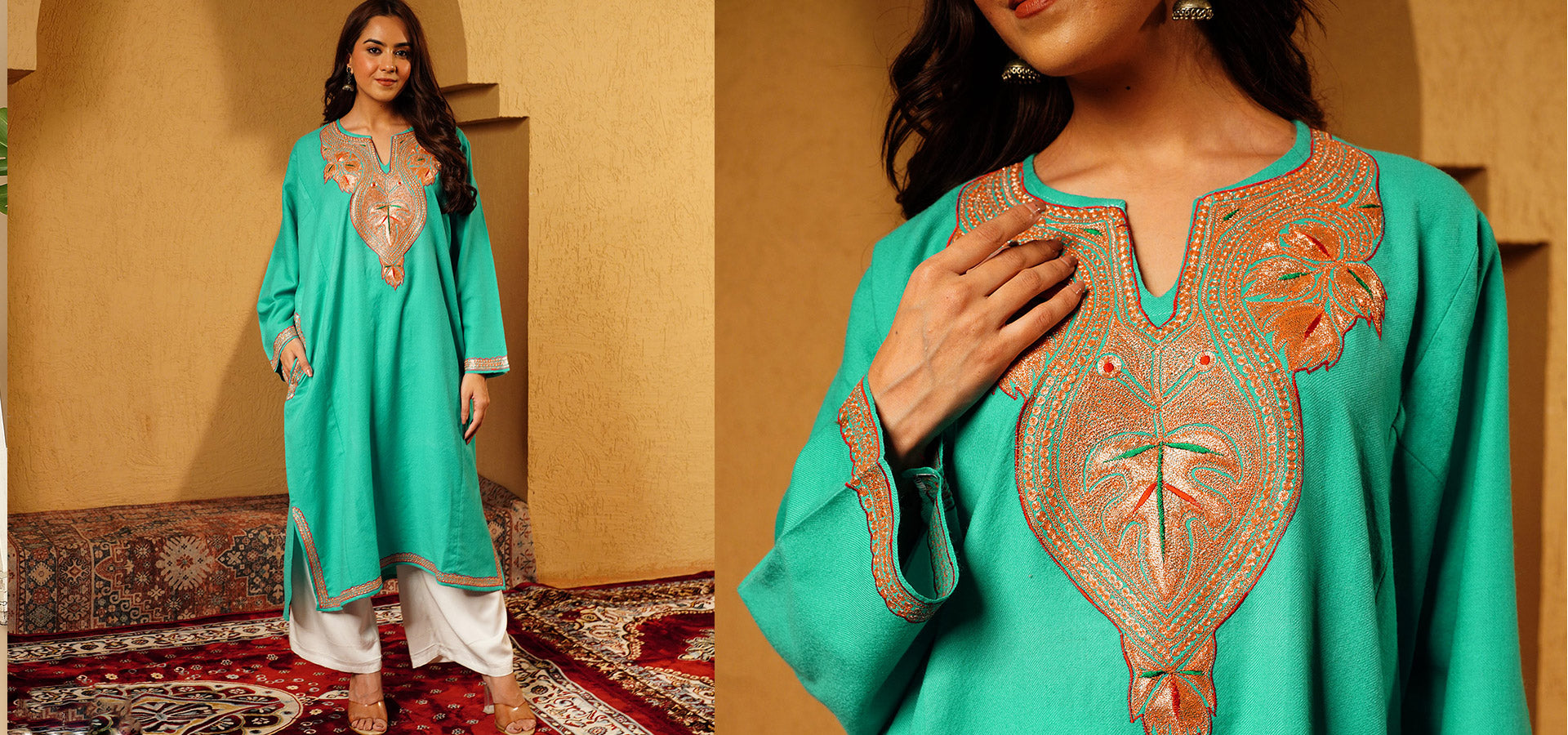 Kashmiri Pheran DesignsKashmir Origin is a brand that has taken the essence...