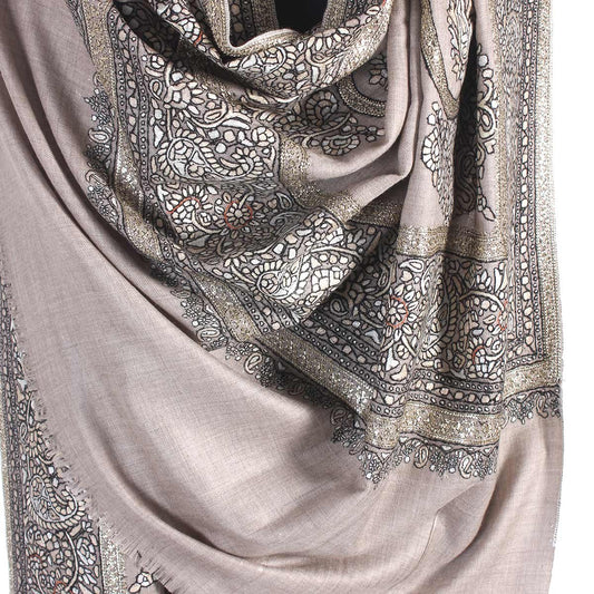 Khudrang Zari and sozni Embroidered Cashmere Pashmina Shawl