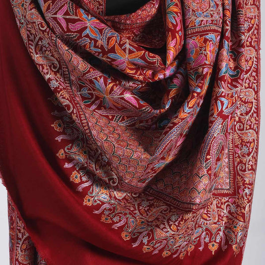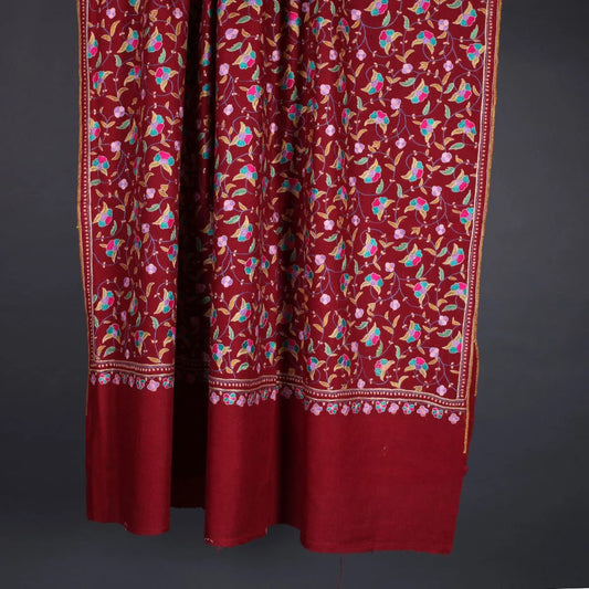 Maroon sozni Embroidered Hashidaar Pashmina Shawl