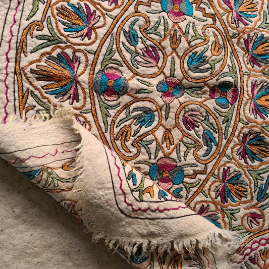 MANZ BADAAM HANDMADE AARI EMBROIDERED NAMDA 4x4 FT