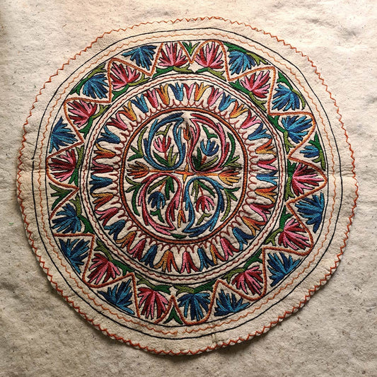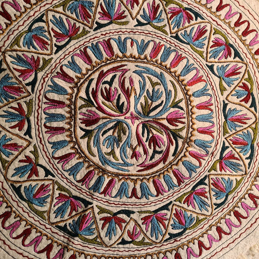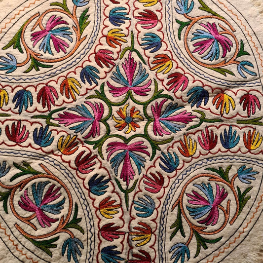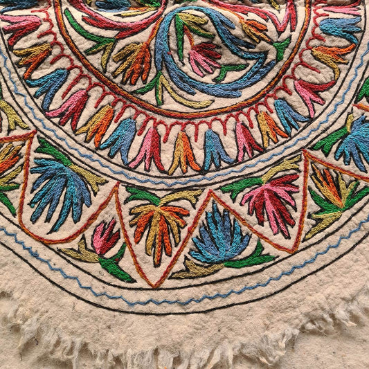 MANZ BADAAM HANDMADE ROUND AARI EMBROIDERED NAMDA 4x4 FT