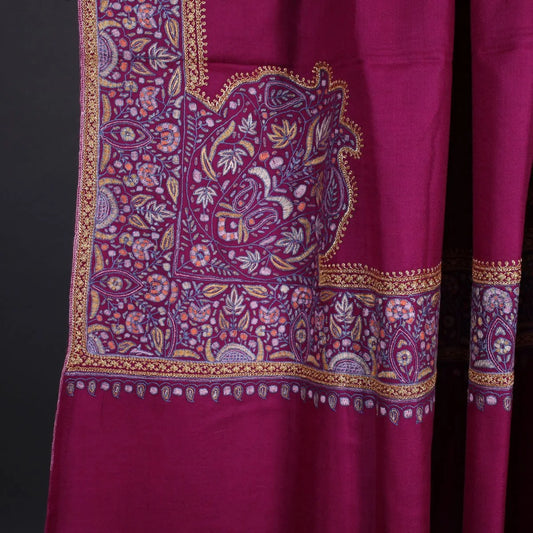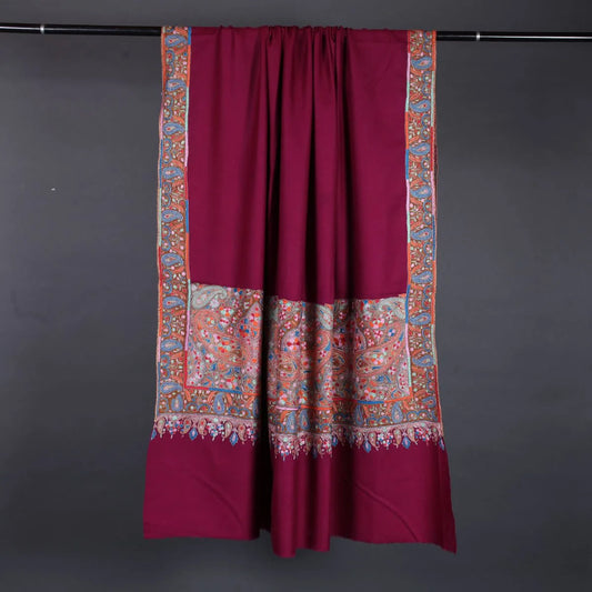Magenta Base Border Design Sozni Embroidered Pashmina Shawl
