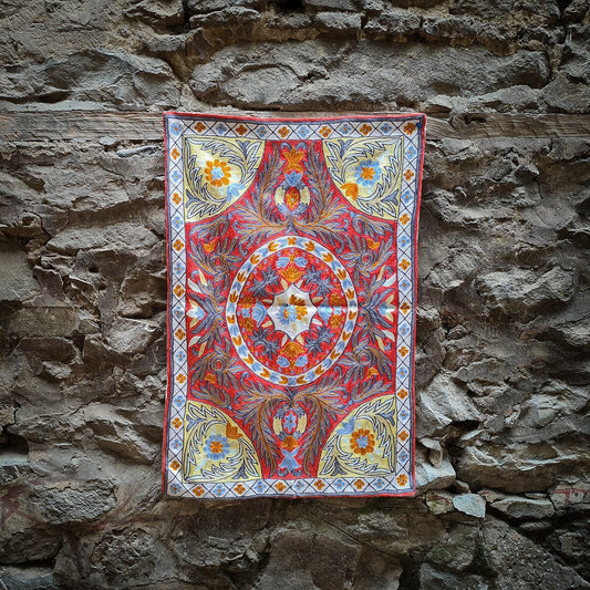 MULTICOLOUR BIRDS DESIGN HANDMADE AARI EMBROIDERED NAMDA 2X2 FT