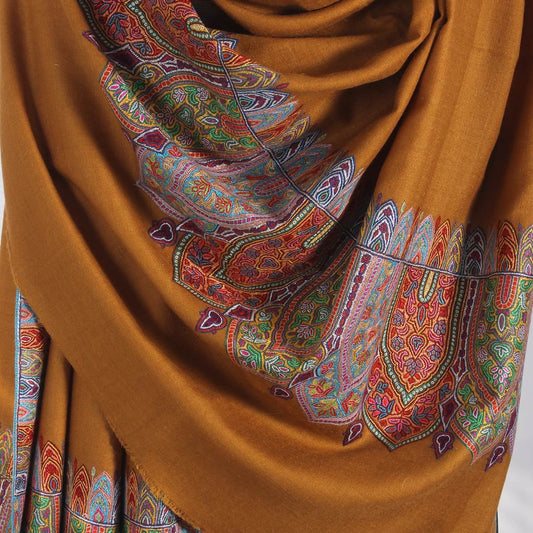 Mustard base Sozni Embroidered Handwooven Pashmina shawl