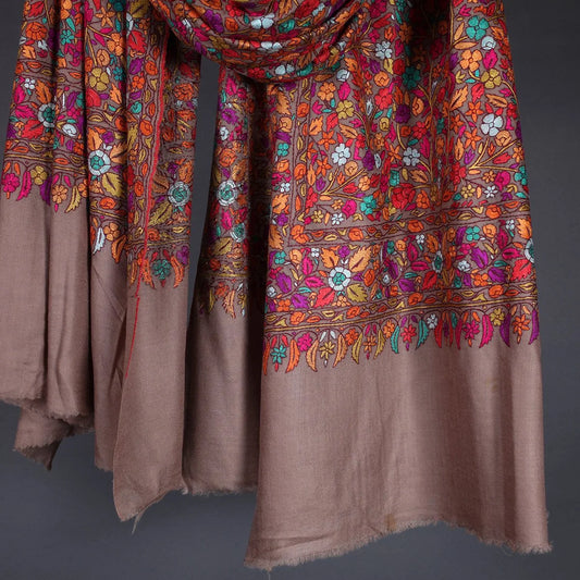 Natural Paper Machie Design Sozni Embroidered Cashmere Pashmina Jamawar Shawl
