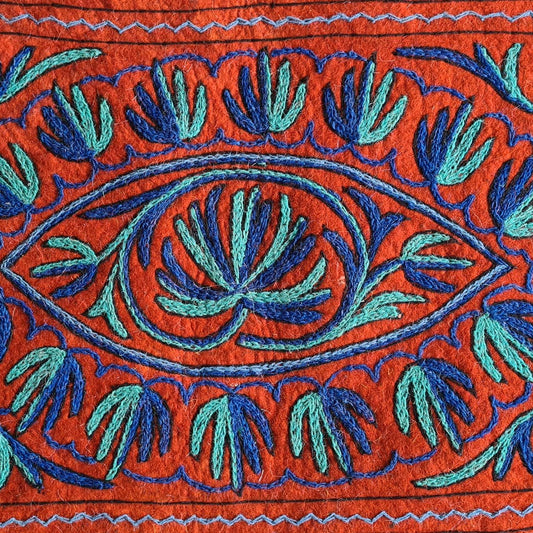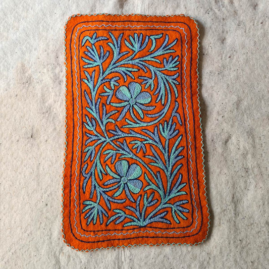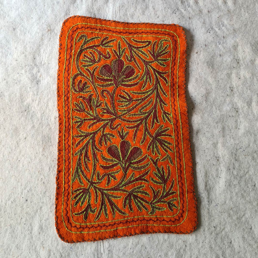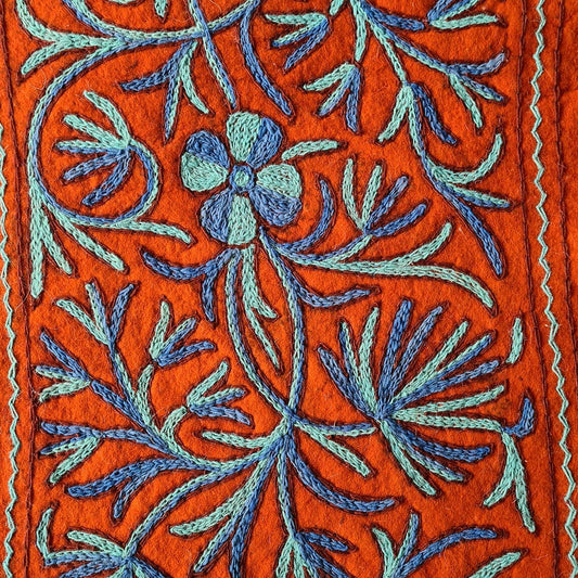 ORANGE HANDMADE AARI EMBROIDERED NAMDA 2X3 FT