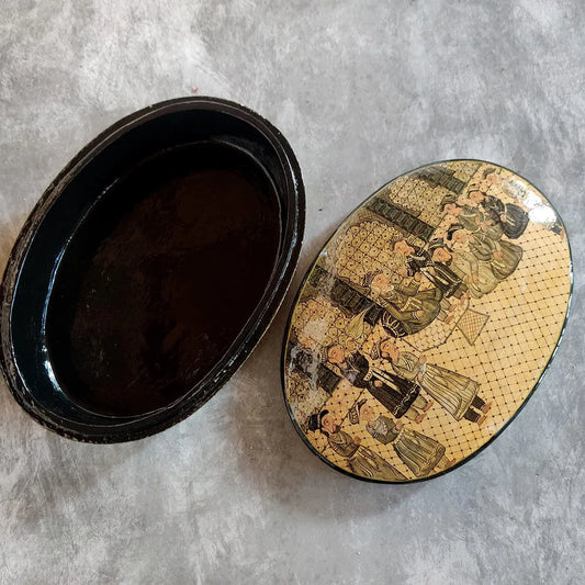 Ovel shape Mughal Darbar Design Handmade Paper Mache Box Meter box | Flat Box | Intense Design kashmir Art