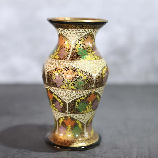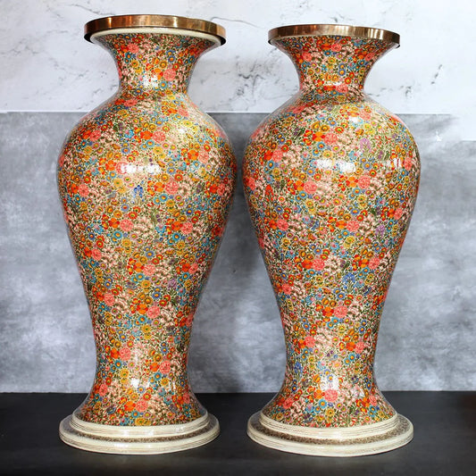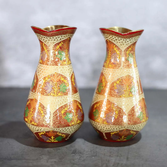 Paper Mache Flower Vase Golden & Red Set Of 2