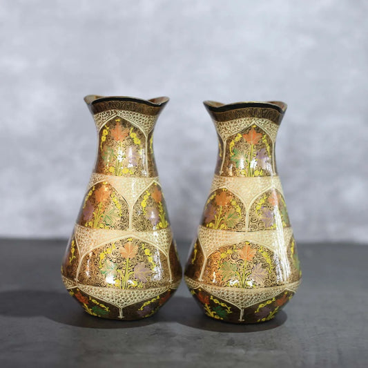 Paper Mache Flower Vase Golden & Yellow Curved Neck Set Of 2