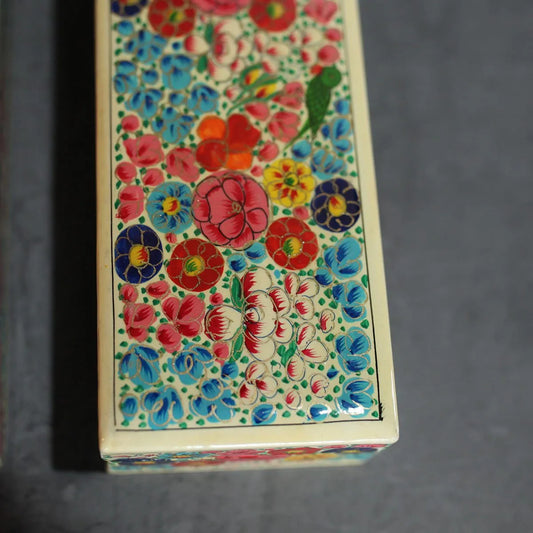 Paper Mache Pencil Box Floral<br> Design Set Of 2