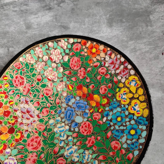Black base gold work tradational design Wood base Paper Mache Tray Set of 3 | Handmade Paper Mache | Intense Design kashmir Art