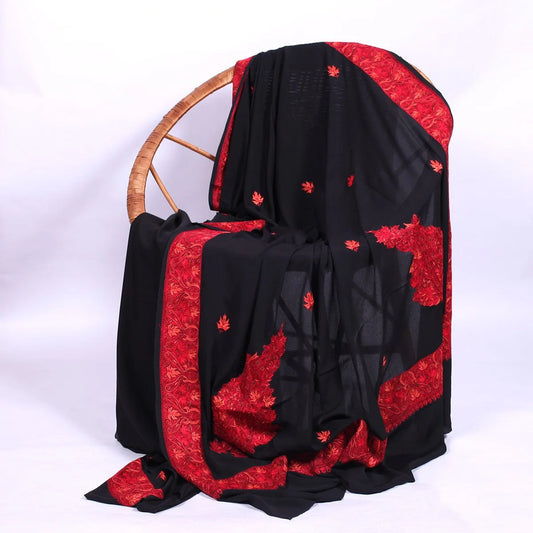 Black Base Chinar leaf Design Aari Embroidered Pure Kashmiri Woolen Stole | Jamawar Stole