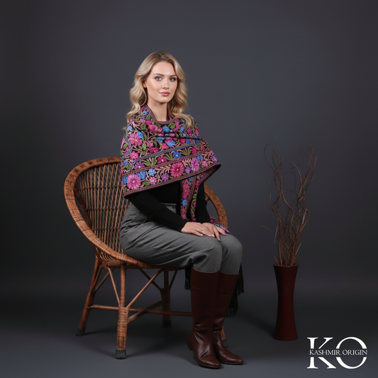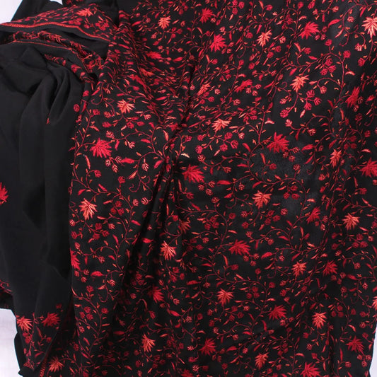 Black Base Folral Design Aari Embroidery Woolen Shawl | Stole