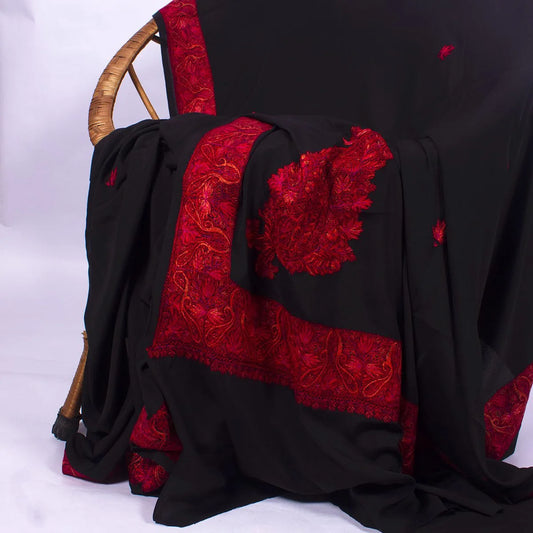Black Base Kashmiri Hand Sozni Embroidered Pure Crepe Saree