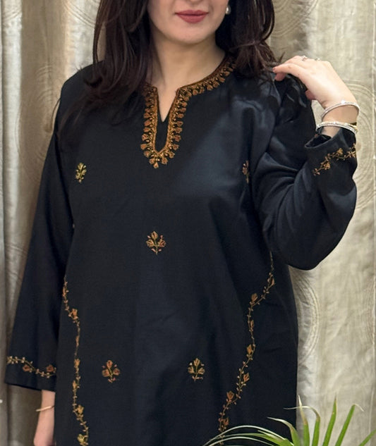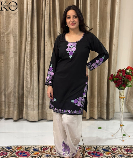 Black Tulip Design Aari Embroidered Kashmiri Co Ord Set