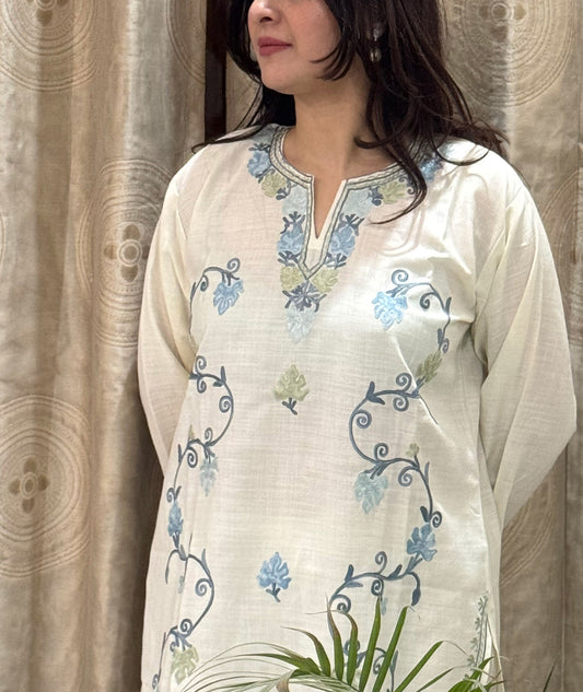 White & Grey Aari Embroidered Kashmiri Co Ord Set
