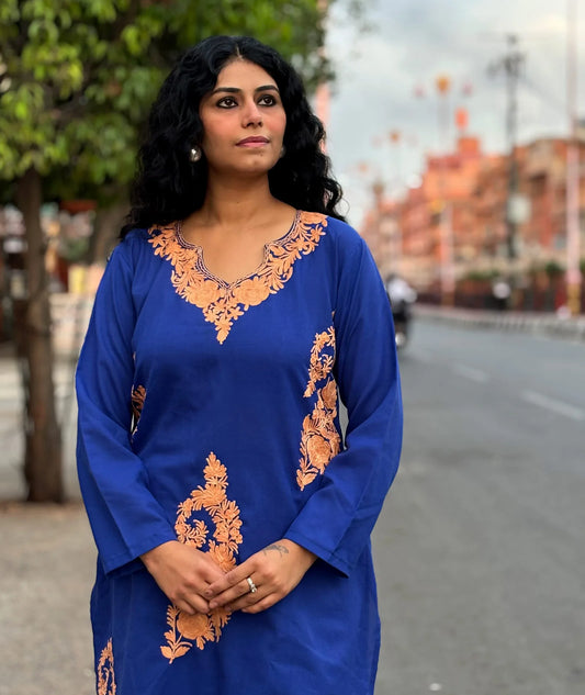 Blue Embroidered Cotton Co ord Set | Full Suit