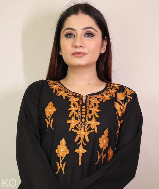 Black Tulip Design Aari Embroidered Kashmiri Co Ord Set
