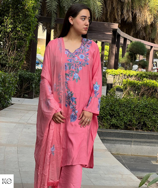 Pink Aari Embriodered Co-ord Set | Full Suit