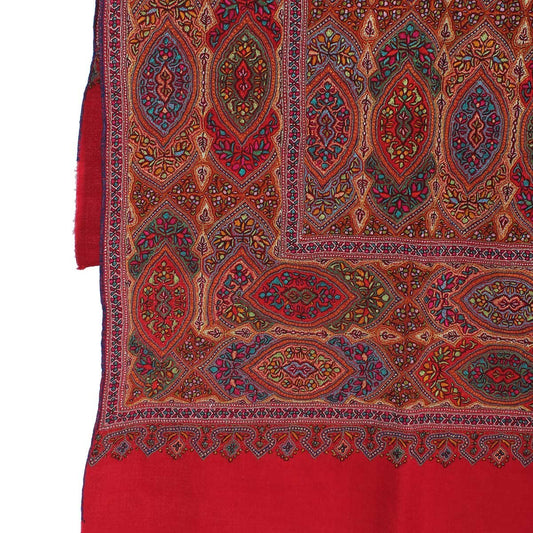 Red Base sozni Embroidered Dordaar Pashmina Shawl