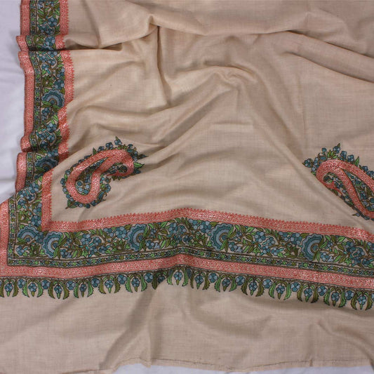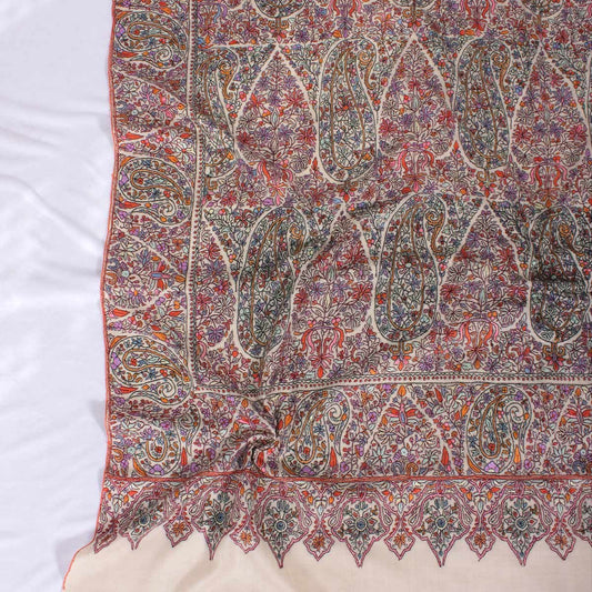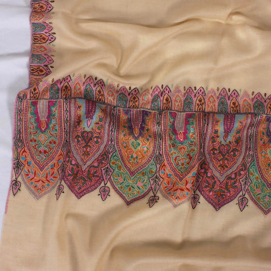 Creme Base sozni Embroidered Big Dordaar Pashmina Shawl