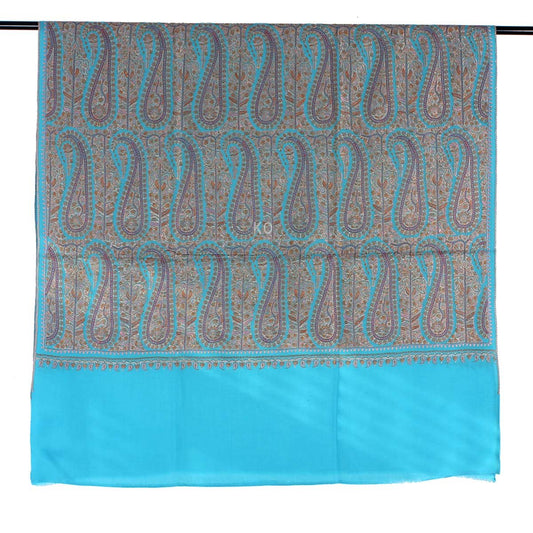 Tourquise base sangeen Paisley design sozni Embroidered Jamawar Pashmina Shawl