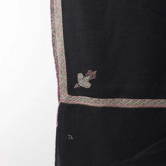 Black sozni Embroidered Hashidaar Pashmina Shawl