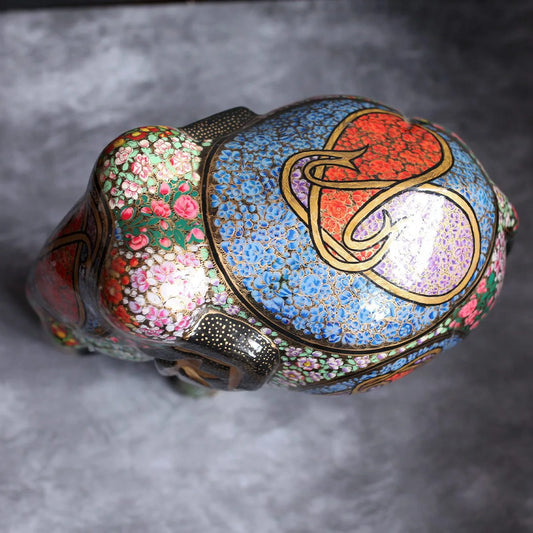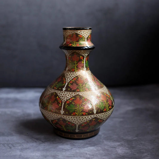 Tradational Brass Base Paper Mache Hooka Floral design | Kashmiri Paper Mache 15 x 8 INCH