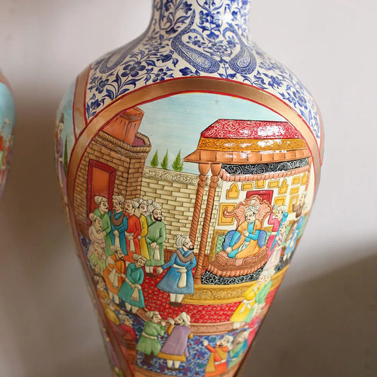 Emboss Mughal Darbar Handmade Paper Mache Flower Vase (Set Of 2) | Kashmiri Paper Mache 28 x 11 INCHES