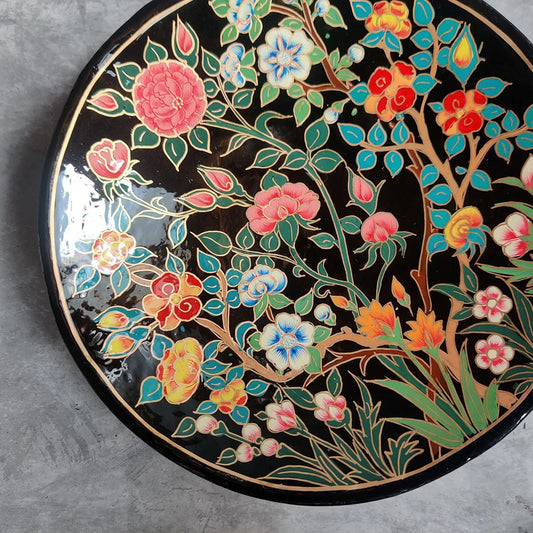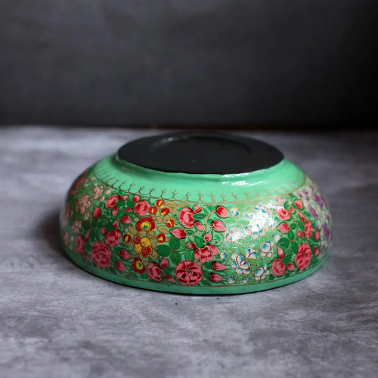 Floral design handmade Paper Mache Fruit Bowl 10 x 10 INCHES | Kashmiri hand painted | Kashmir Art