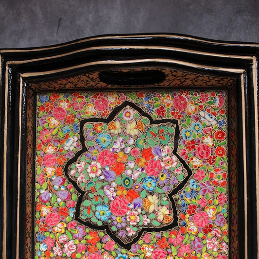 Kashmiri Hazaar design Wood base Paper Mache Tray Set of 3 | Handmade Paper Mache | Intense Design kashmir Art