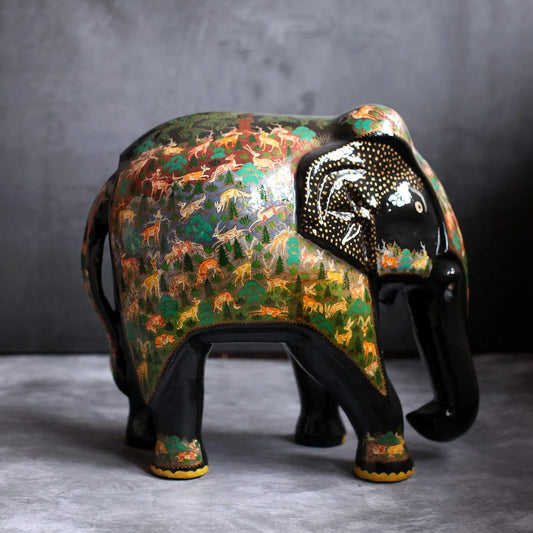 Multicolour Handmade Paper Mache Elephant Set of 2 | Big ,Medium Size Elephants | kashmir Art