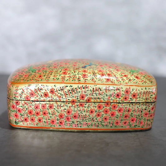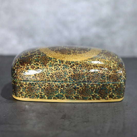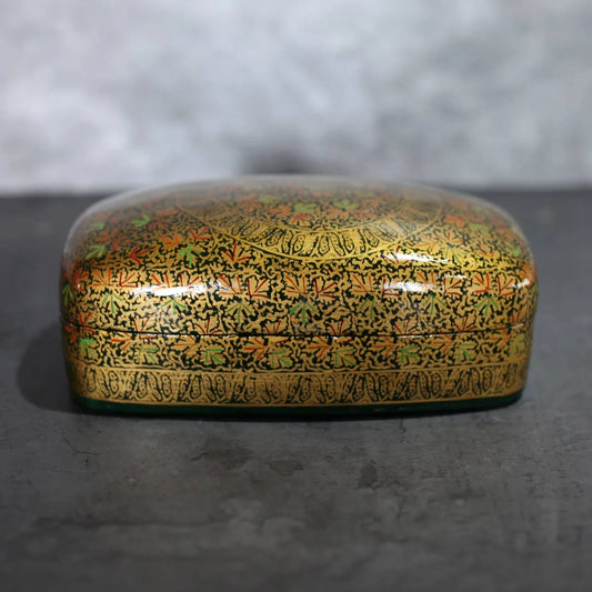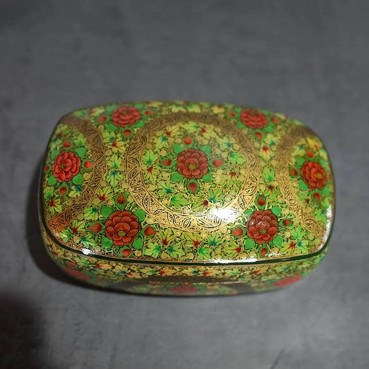 Green floral Design Handmade Paper Mache Box Meter box | handpainted | Kashmir Art | Kashmiri Paper mache