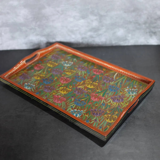 Paper Mache Tray Lotus Design Rectangle Shape 18x12 Inches