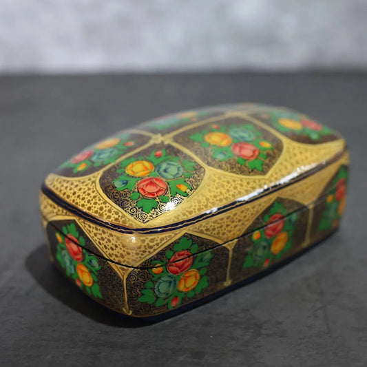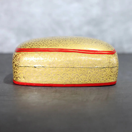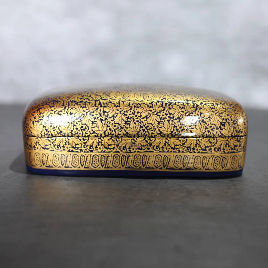 Ovel shape Mughal Darbar Design Handmade Paper Mache Box Meter box | Flat Box | Intense Design kashmir Art