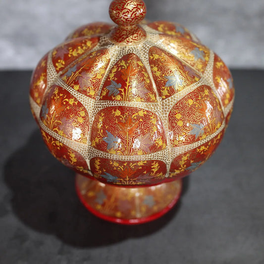 Paper Machie Dry Fruit Bowl<br> Red & Golden