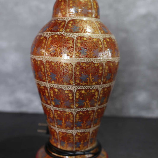 Paper Machie Table lamp Set Of<br> 2 Red & Golden (5x13)