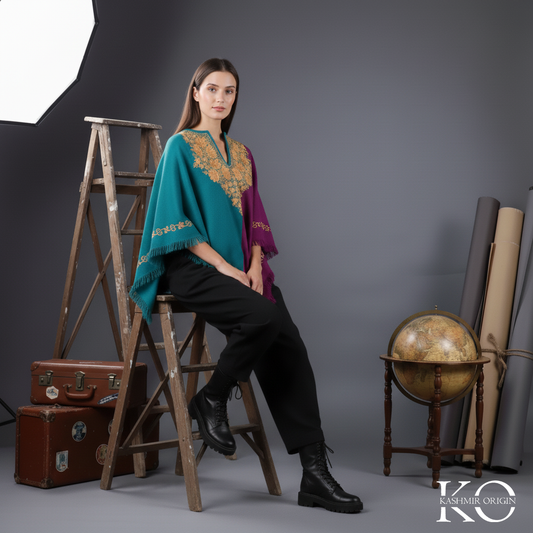 Purple Poncho with Aari Embroidery, Kashmir Embroidery