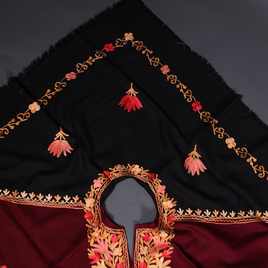 Maroon Floral Design Poncho with Kashmir Aari Embroidery