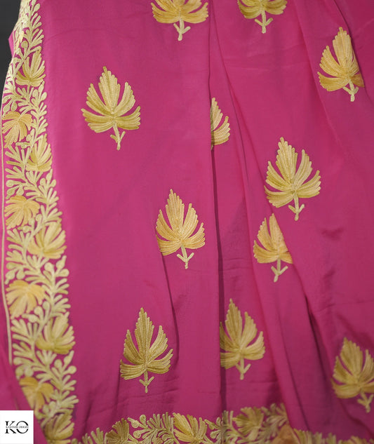 Pink Chinar Bootidaar Aari Embroidered Pure Crepe Saree