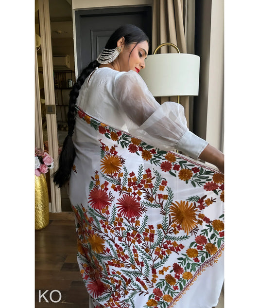 Overall, a Kashmiri embroidered saree is not just a piece of clothing but also a work of art that embodies centuries of craftsmanship and cultural heritage.