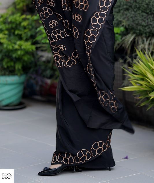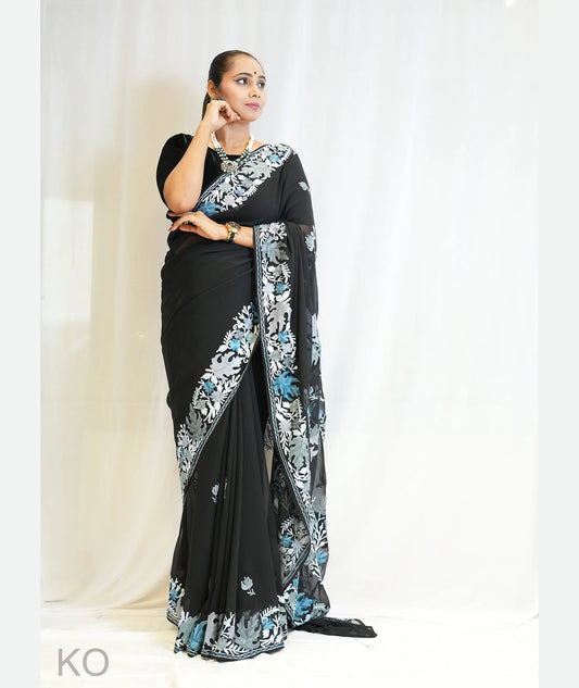 Black Forest Green Chinar Aari Embroidered Georgette Saree