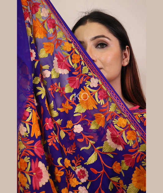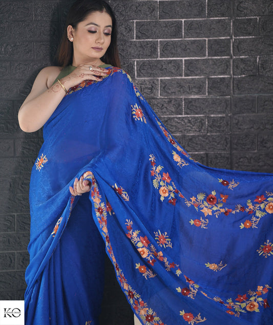 Posh Bahaar Blue Aari Embroidered Georgette Saree