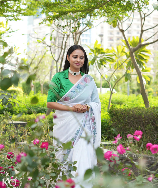 Kashmiri embroidered sarees are exquisite pieces of clothing known for their intricate craftsmanship and rich cultural heritage. The embroidery techniques used in Kashmiri sarees are centuries-old and reflect the region's artistic prowess.