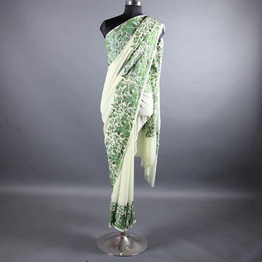 Posh Phulai Aari Embroidered Creme Georgette Saree