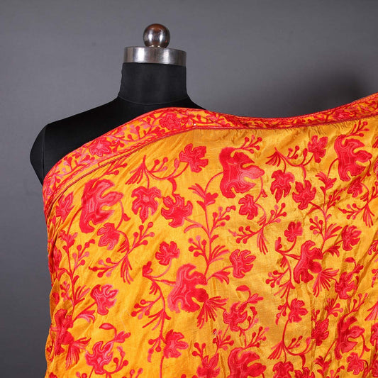 Red Chinar Aari Embroidered Yellow Base Crepe Saree