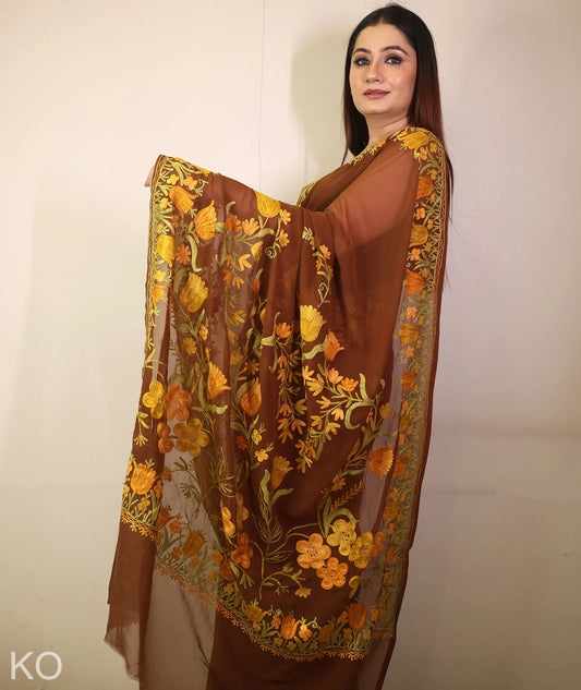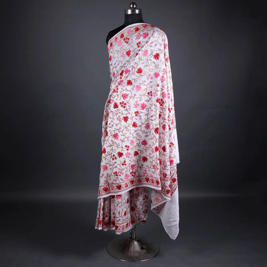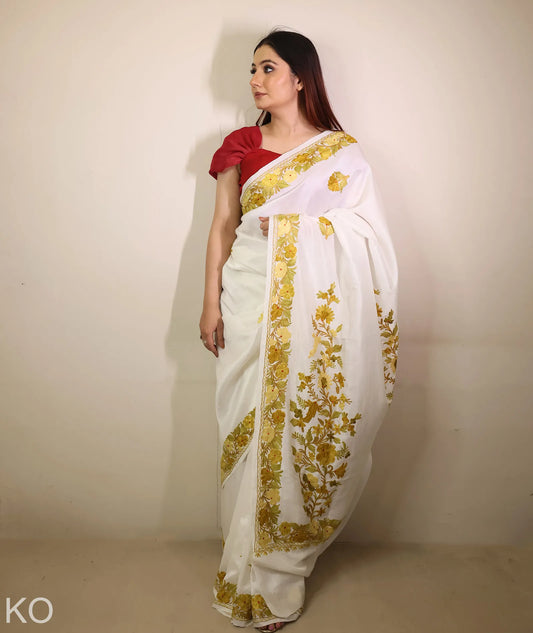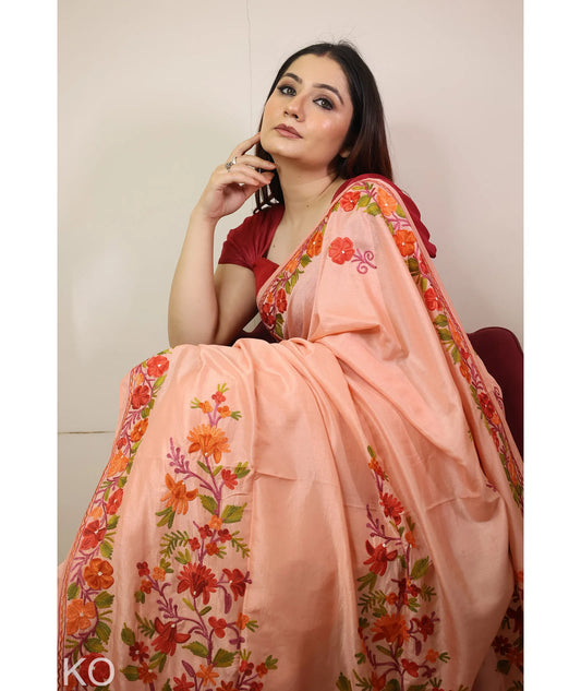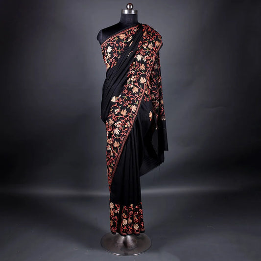 WineTop Seller Multifloral Aari Embroidered Kashmiri Pure Silk Saree