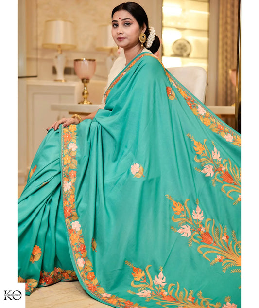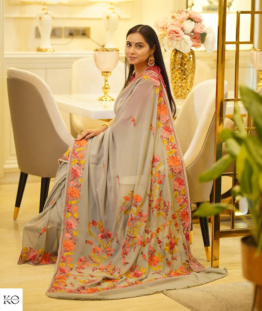 5. **Occasions**: Kashmiri embroidered sarees are popular choices for special occasions such as weddings, festivals, and cultural events. They are considered elegant and timeless, making them prized possessions in many wardrobes.