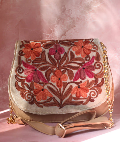 Make a statement with this Kashmiri Aari Embroidered Sling Bag! Featuring colorful hand embroidery, this bag blends fashion and artistic tradition.
